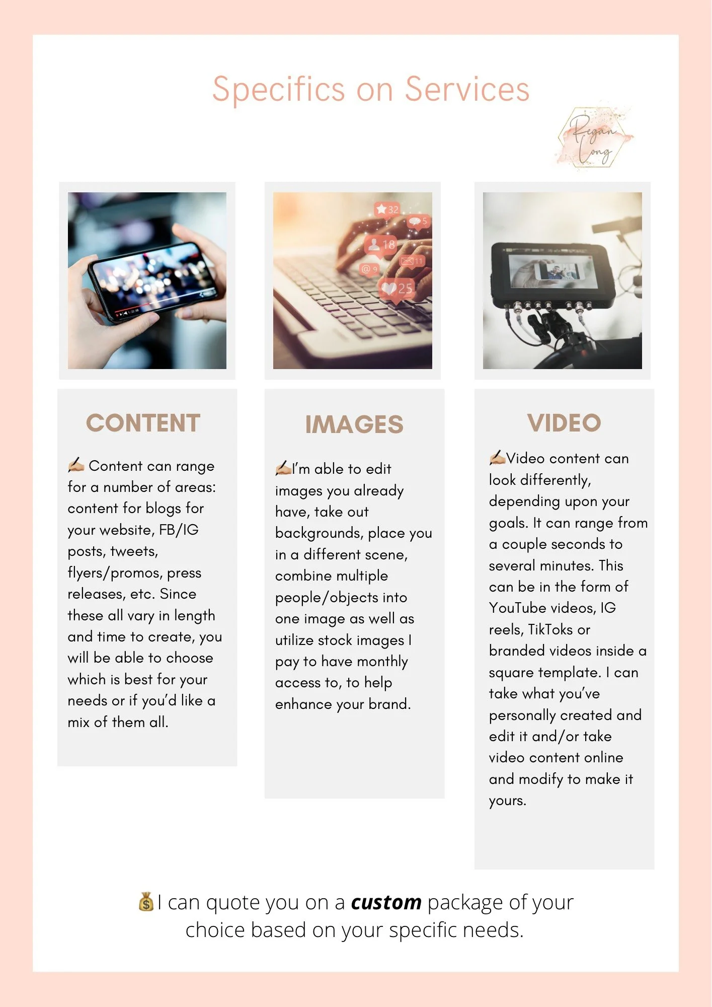 “If you have a business, are an influencer or are looking for help with social media, I have an answer for you!! I remember being so overwhelmed with my social media when I started out and prayed for help. It was such a relief when that help came. If that is you, you don’t have to be overwhelmed anymore! My amazingly talented friend, Regan Long, is here to help you! She does work for me and is truly so professional and so awesome at what she does. You would be blessed to work with her! For more info, check out her website.”